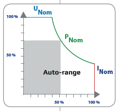 本系列所有型號的輸出功率都可靈活調整。可在較低電流時輸出較高電壓,或在低電壓時輸出較高電流,但總是維持在最大額定功率范圍內。它們的設定功率都可調,因此僅用一臺產品就能覆蓋廣泛的應用。